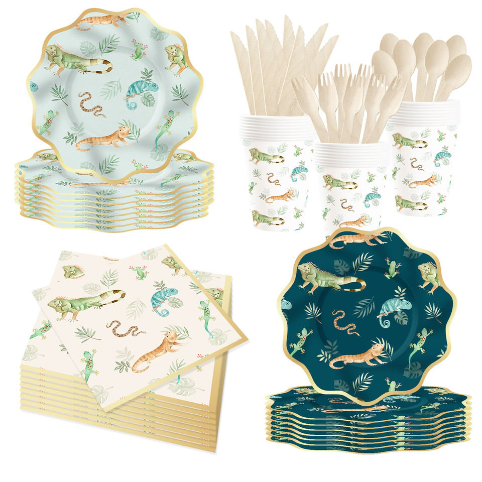DAMAI New Customized Animal Theme Disposable Dessert Dinner Paper Plates Cups Napkin Tableware Set Party Supplies