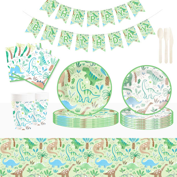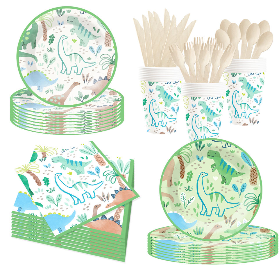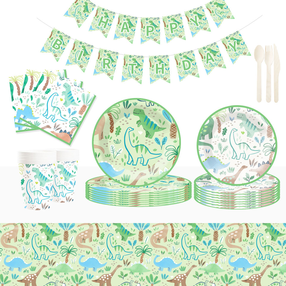 DAMAI New Customized Cute Animal Theme Party Decoration Dinosaur Disposable Party Paper Plate Cup Napkin Tableware Set for Kid