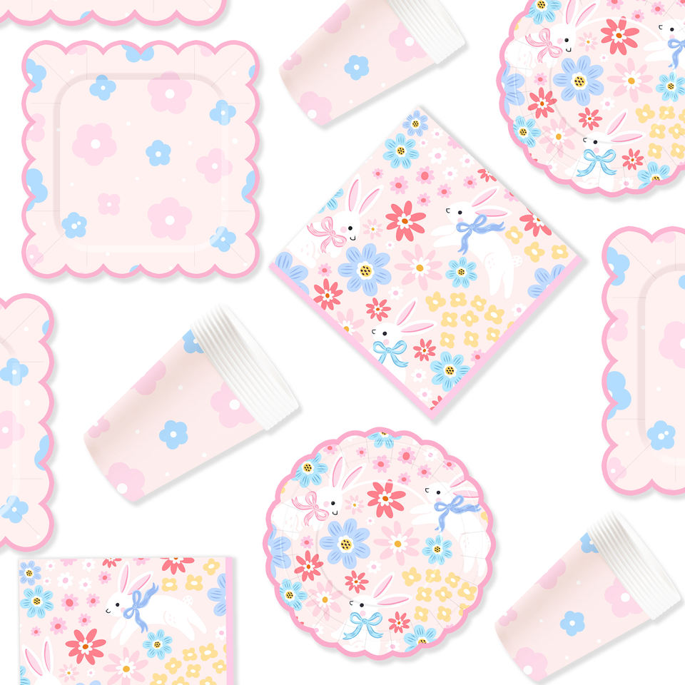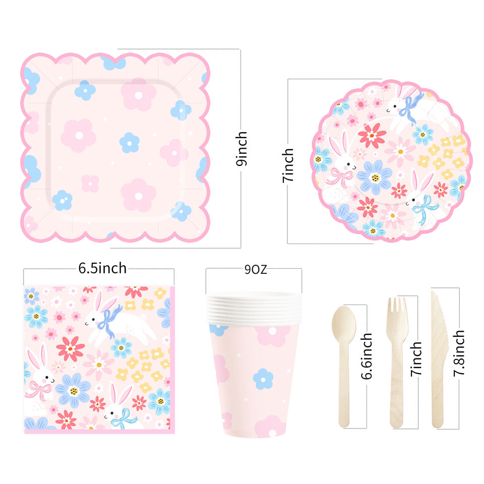 DAMAI New Customized Easter Theme Disposable Paper Plate Napkin Paper Tablecloth with Bunny Tableware Set Festival Decoration