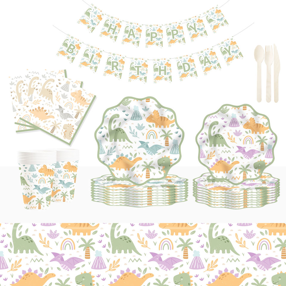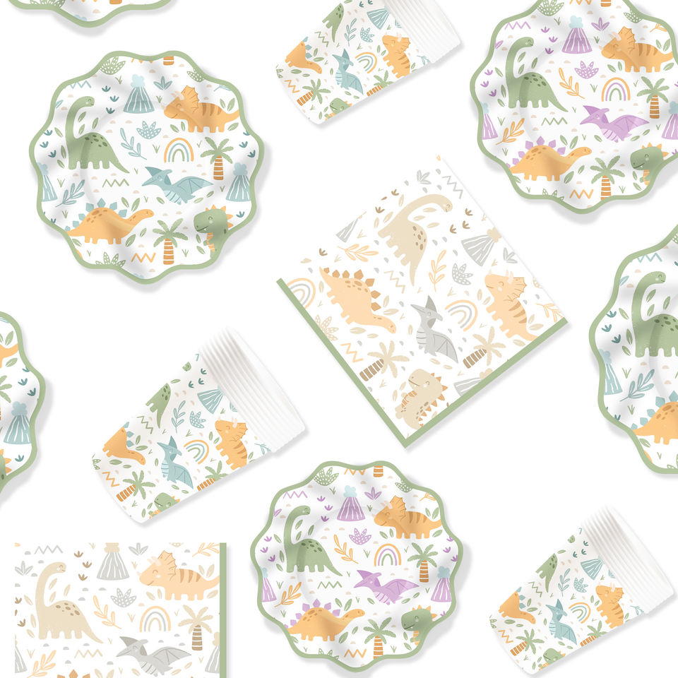 DAMAI New Design Dinosaur Theme Disposable Dessert Dinner Paper Plates Cup Napkin Tableware Set for Party Supplies