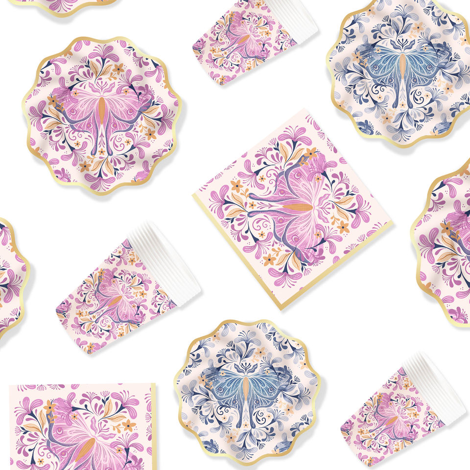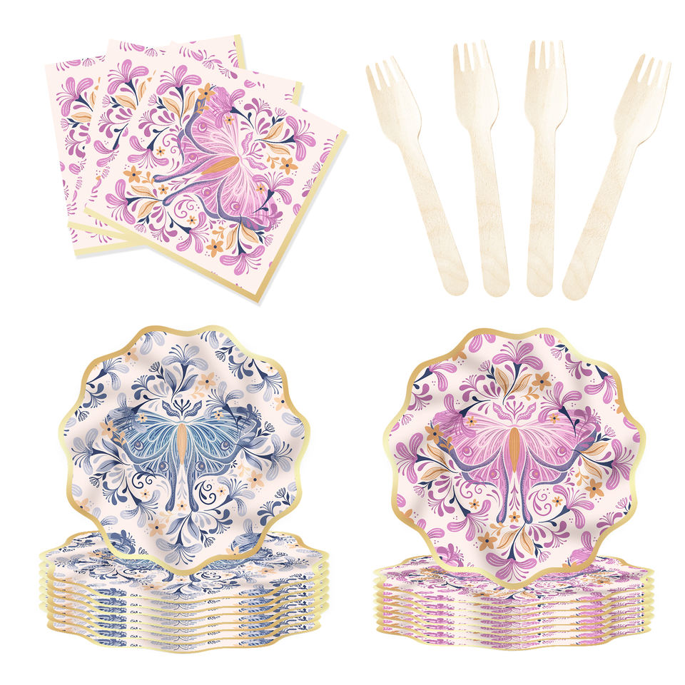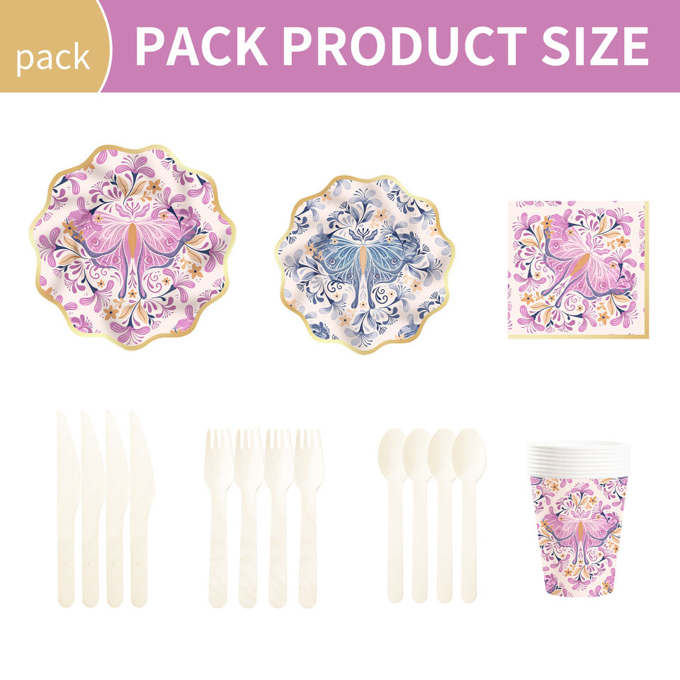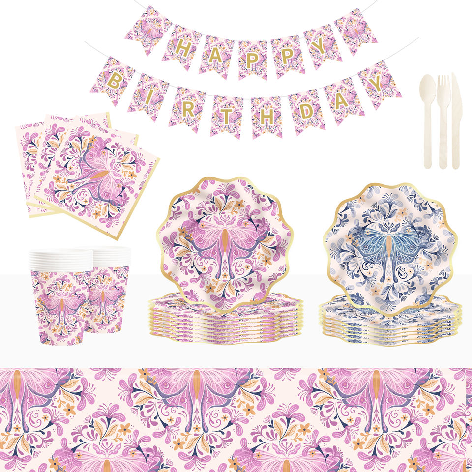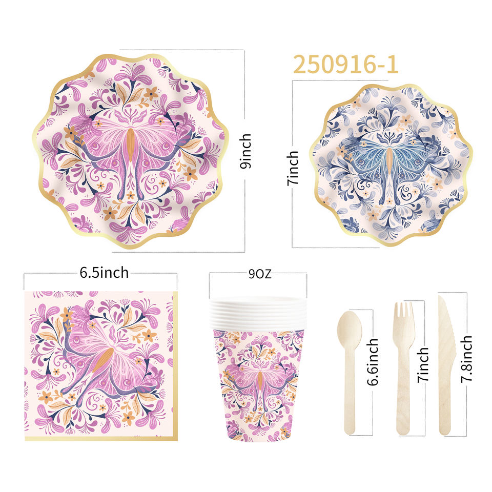 DAMAI New Design Tea Party Tableware Set with Luxurious butterfly Pattern Include Paper Plates Cups Napkins for 8 Guests