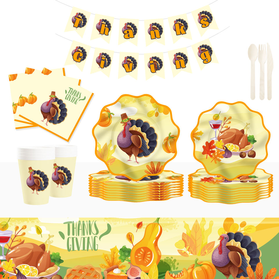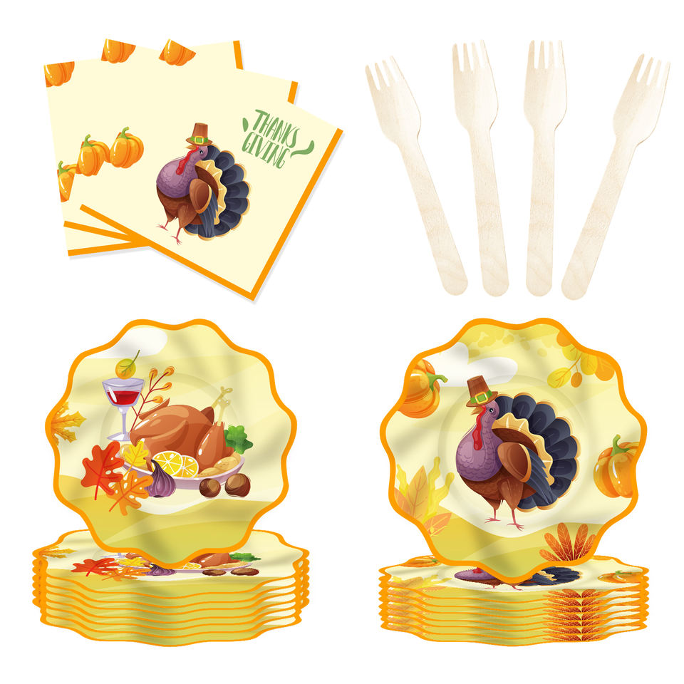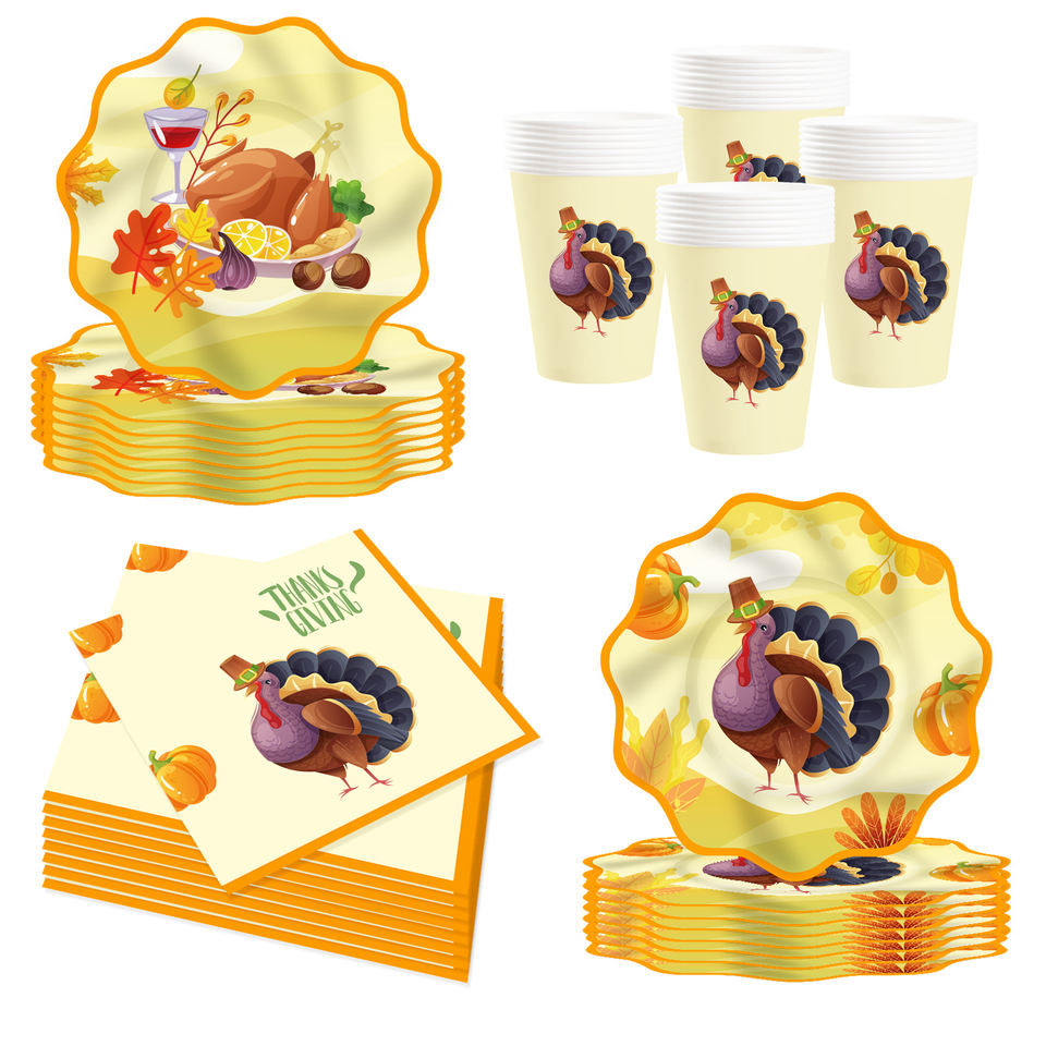 DAMAI Pumpkin Thanksgiving Tableware Set Table Decorations Paper Plates Party Paper Cups Napkins Disposable Festival Dinnerware