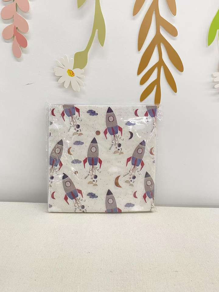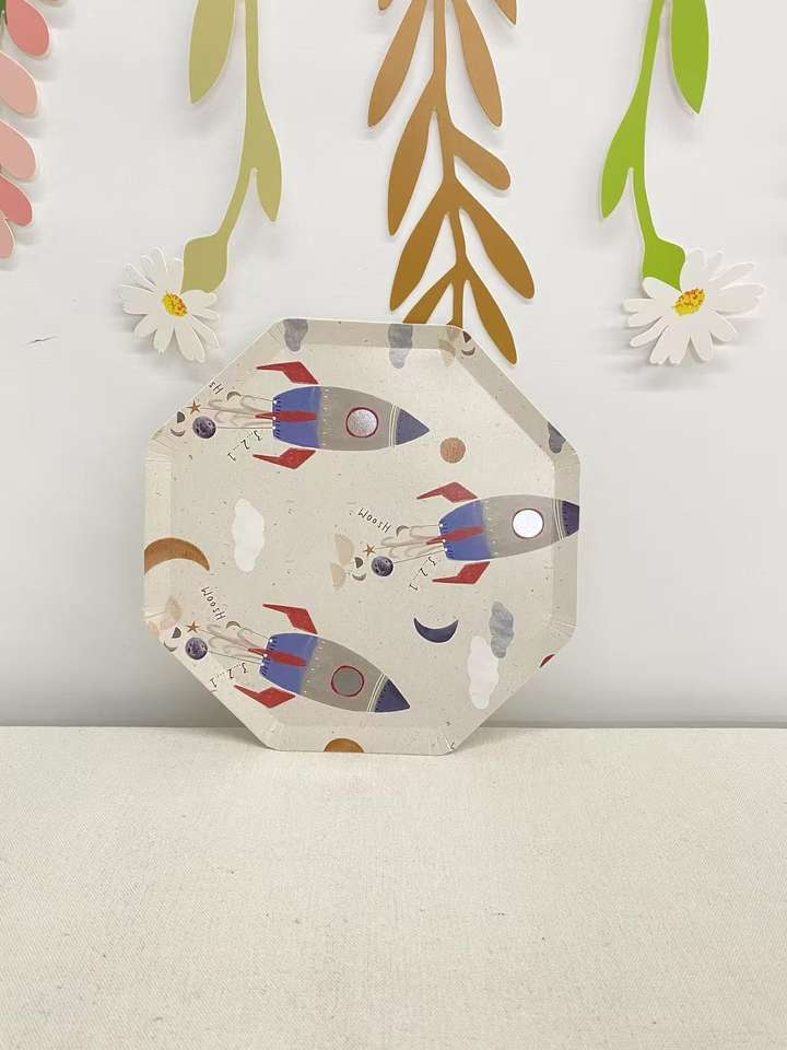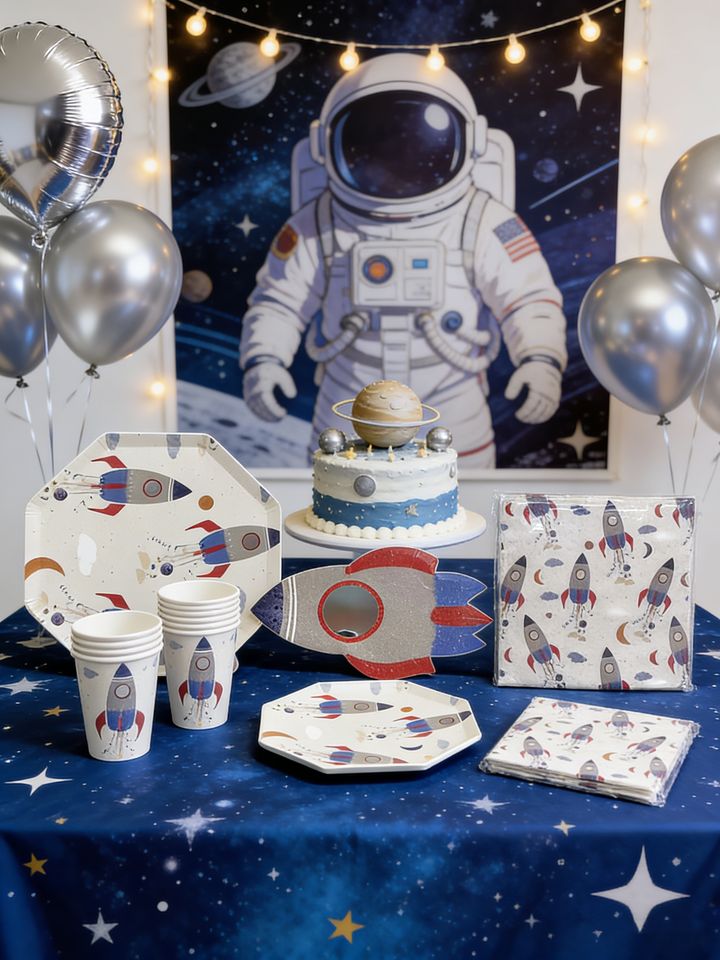 DAMAI Rocket Themed Party Tableware Set Kids Birthdays Disposable Plate Paper Cups Napkins for 8 Guests