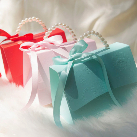 DAMAI Wedding Candy Boxes - Foldable Bridal Favors Creative Party Rectangle Gift Packaging for Paper Pearl Handbag Boxes
