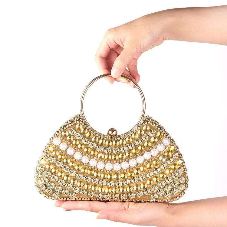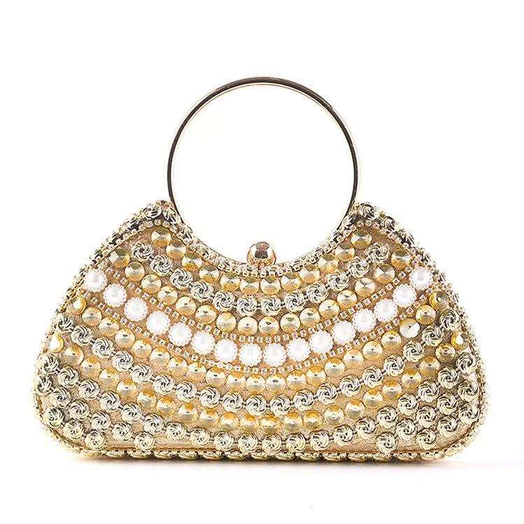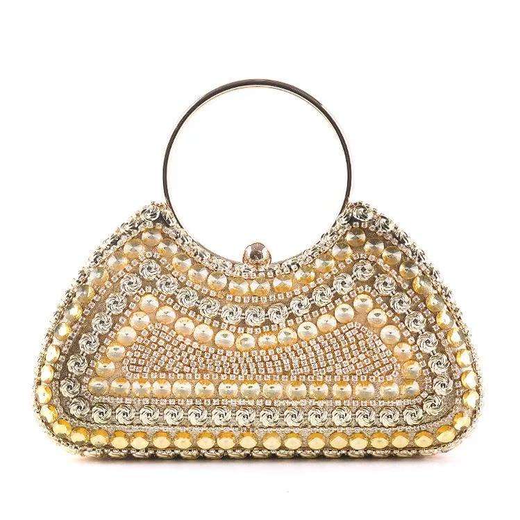 DAQI Lady Fashionable Evening Clutch Crossbody Shoulder Bag Pearl Embedded Diamond Tassel Pu Material Snap Closure Women's