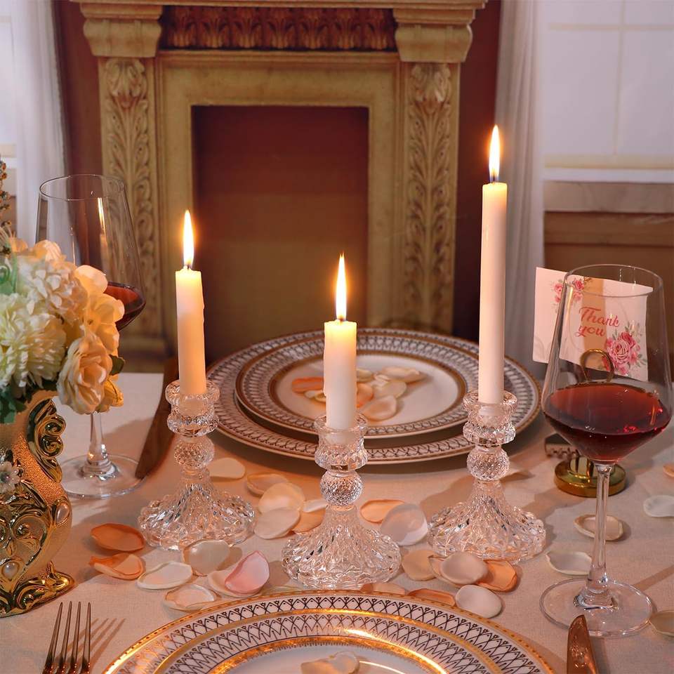 DARJEN 12Pcs Clear Glass Candlestick Holders 4\" H Taper for Weddings & Spring Parties Bulk Set Tableware & Decorations