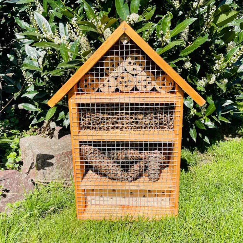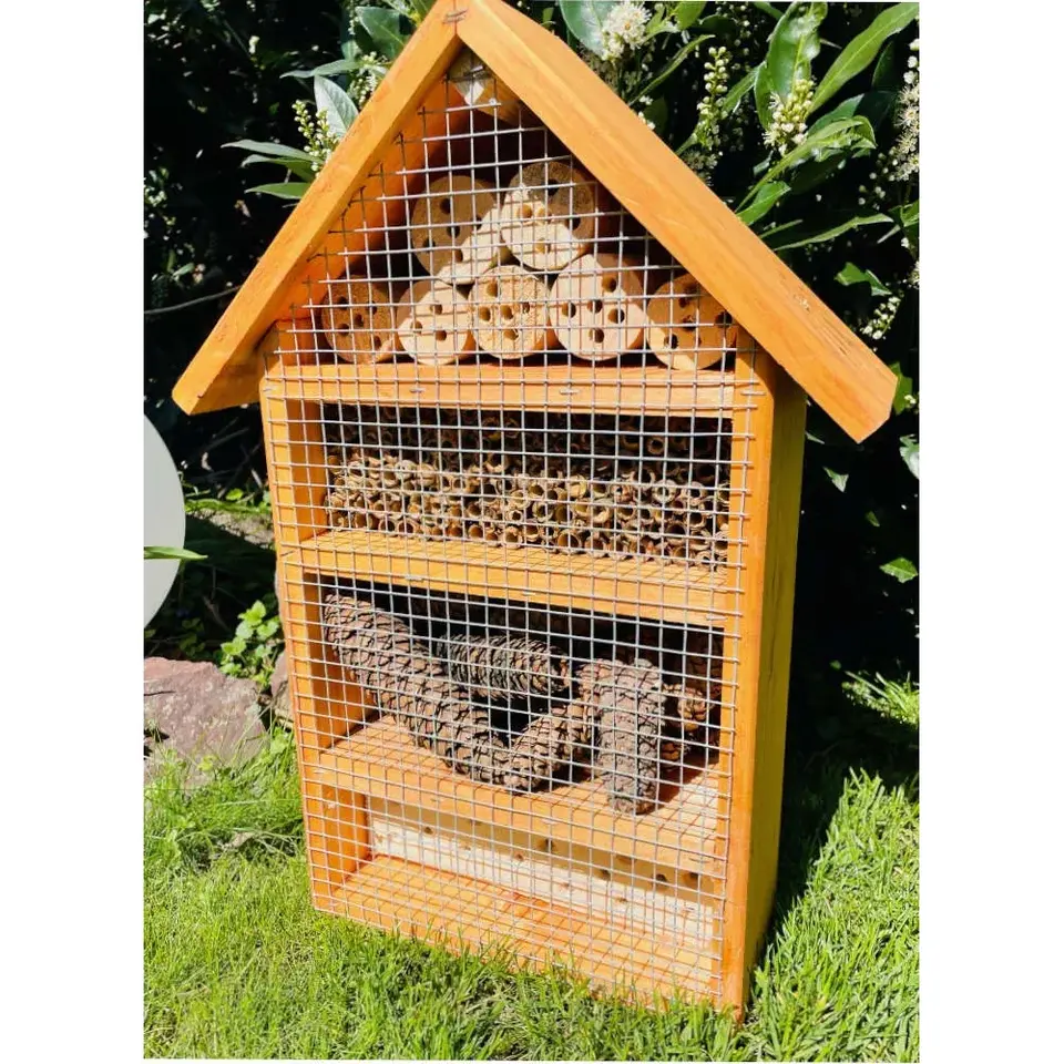 DARLUX Brown Wooden Insect Hotel Nesting Aid for Wild Bees Pet Cage for Insects