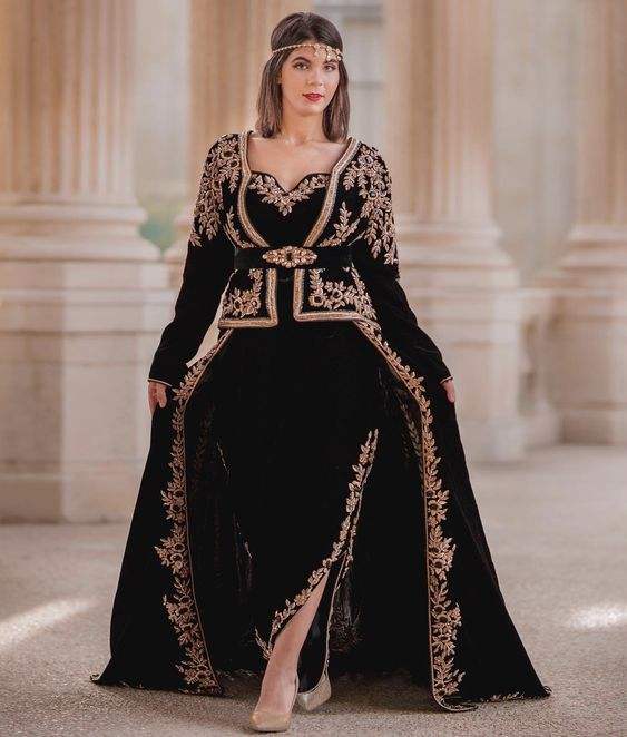 2024 Dazzling Heavy Embroidery Silk Jacket & Karakou Trail Dress Embellished with Crystal Glass Beads & Pearls Dabka Work