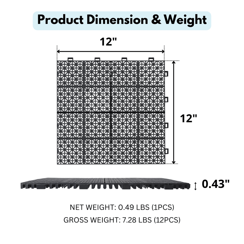DB 12 X 12 Inch Black Interlocking Deck Tiles Waterproof Outdoor All-Weather Anti-Slip for Bathroom Shower Porch-Premium Decking