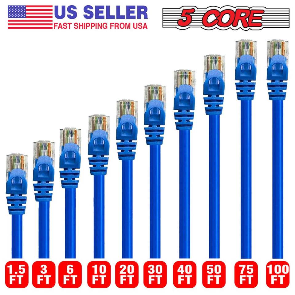 DB 15 ft Long Cat 6 High-Speed WiFi RJ45 Ethernet Cable 5 CORE Patch Cord for Indoor Outdoor Gaming Computer Internet for Indoor