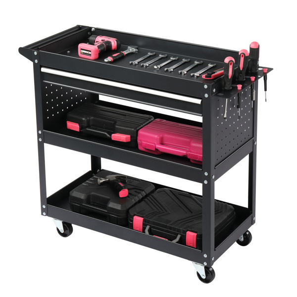 DB 3-Tier Heavy Duty Metal Rolling Tool Cart Pegboard Drawer 4 Hooks 330 Lbs Load Capacity Plastic Storage Cart Large Storage