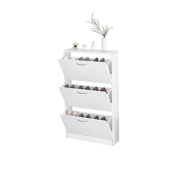 DB 3-Tier White Wood Narrow Shoe Storage Cabinet with Flip Down Shoe Rack Extendable 3-Tier Entryway Organizer for Home Use