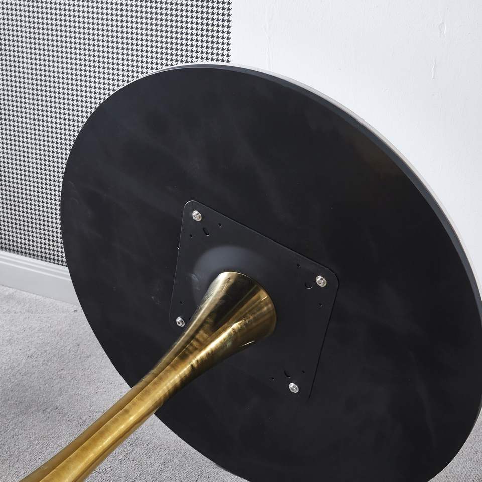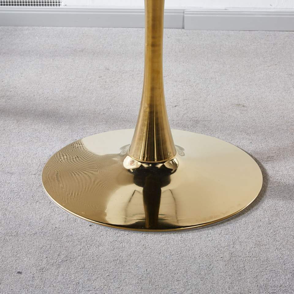DB 31.5 Golden and White Tulip Pedestal Dining Table Mid-century Style MDF Top for 2-4 People for Home Office