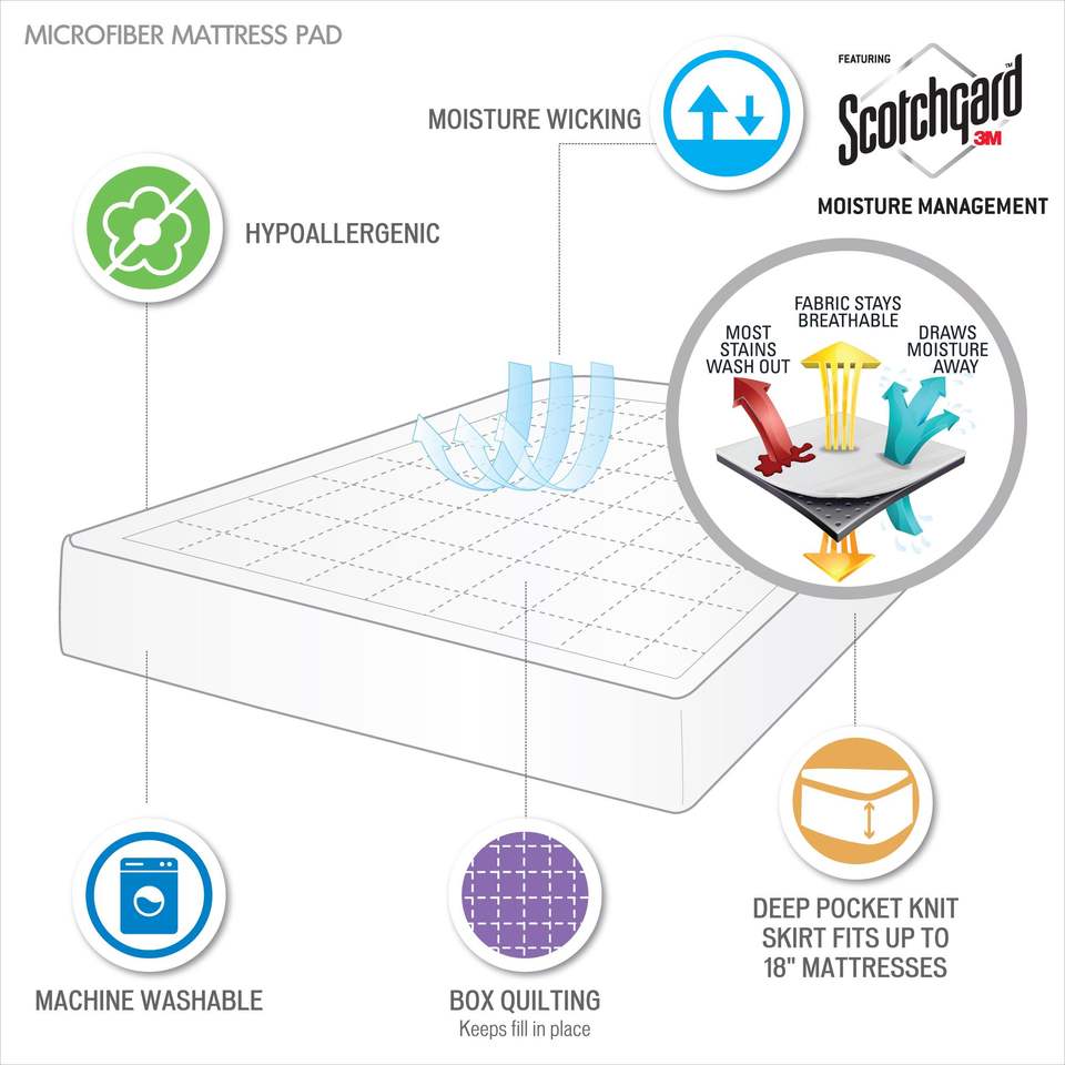 DB 3M Portable Anti-Static Quilted Microfiber Mattress Pad Soft Single Queen King Home Hotel Hospital Woven Polyester Fabric