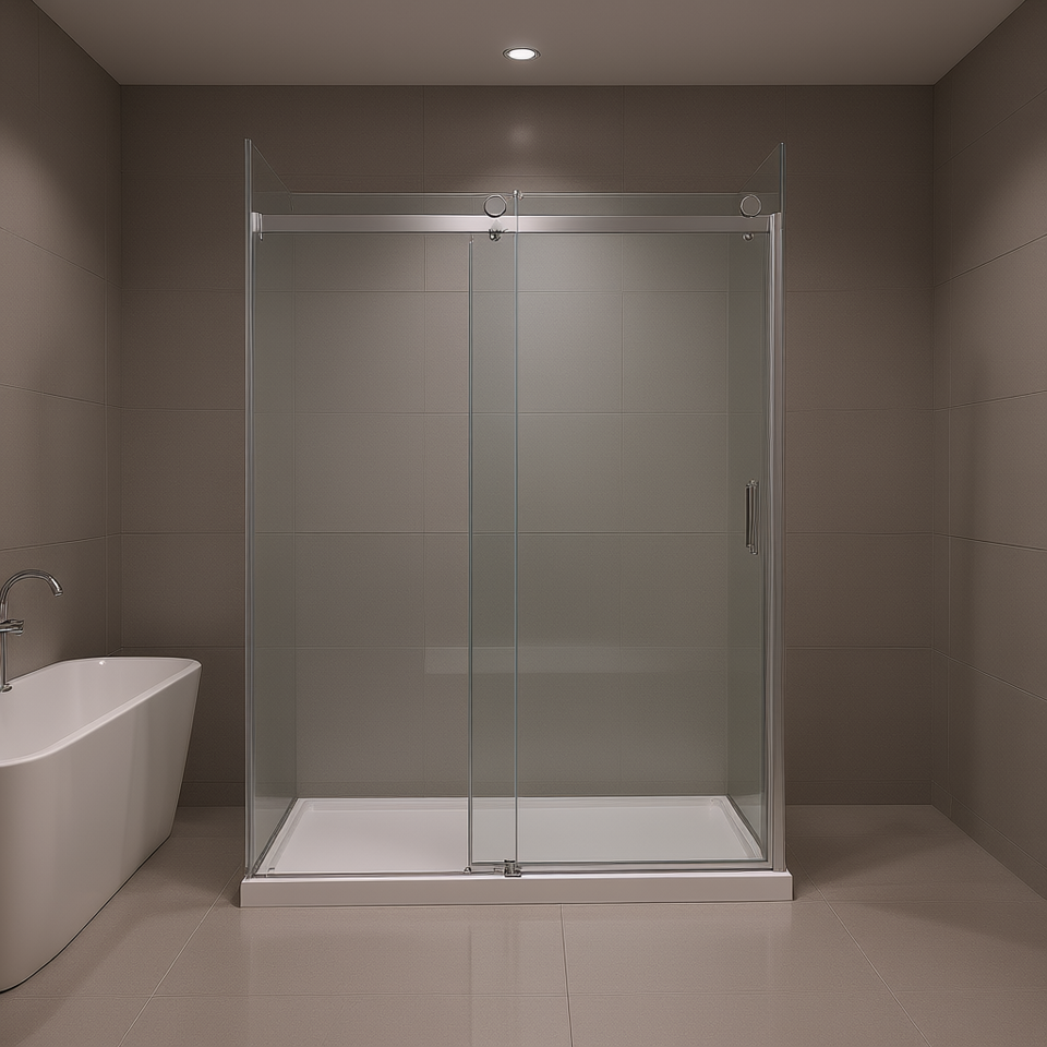 Frameless Single Sliding Shower Door 56-60" W x 76" H With Soft-Closing 6mm Tempered Glass For Bathroom Minimalist Design