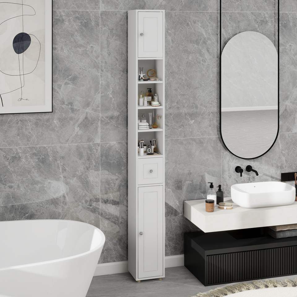 DB 71\" Freestanding Bathroom Storage Cabinet Tall Slim 1 Drawer 2 Doors with 4 Adjustable White Shelves
