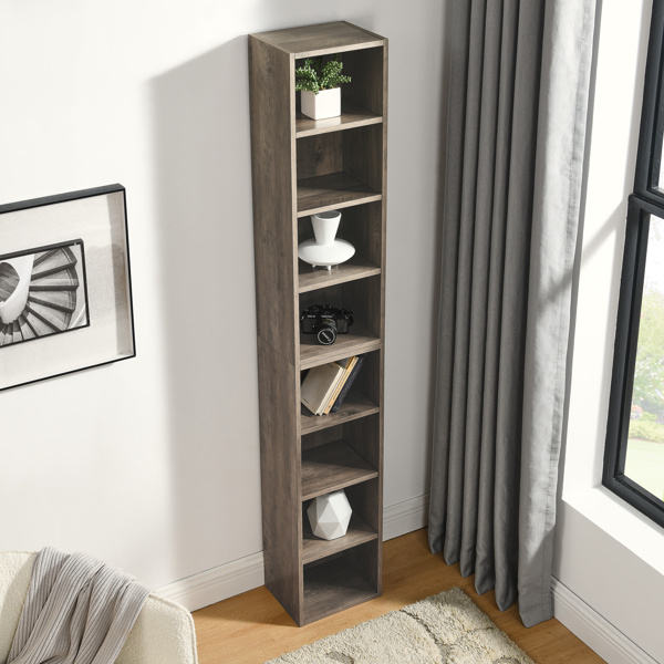 DB 8-Tier Media Tower Rack Adjustable CD DVD Slim Storage Cabinet Tall Narrow Bookcase Display Bookshelf for Living Room