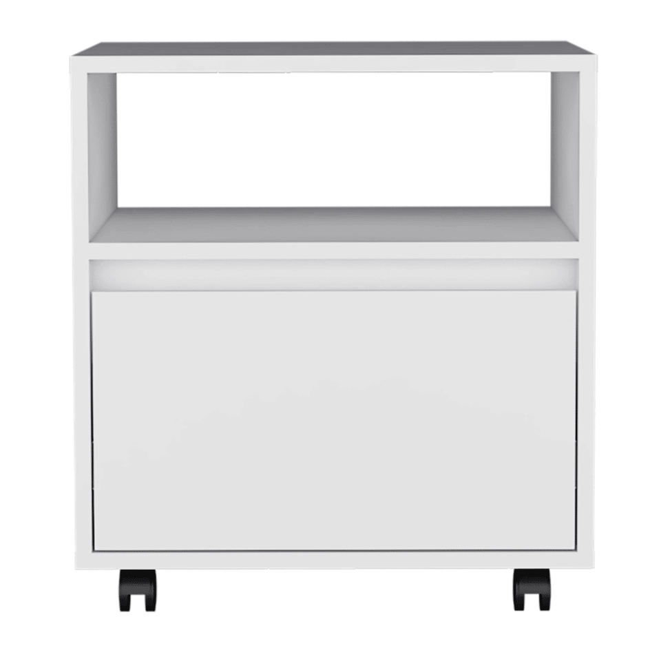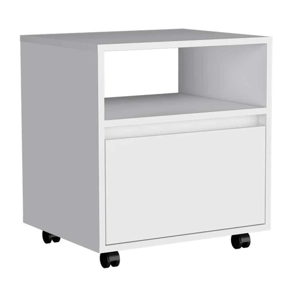 DB Austin Modern Single Drawer Nightstand White Panel Wood Style Bedroom Furniture with Casters for Home Use for Apartments