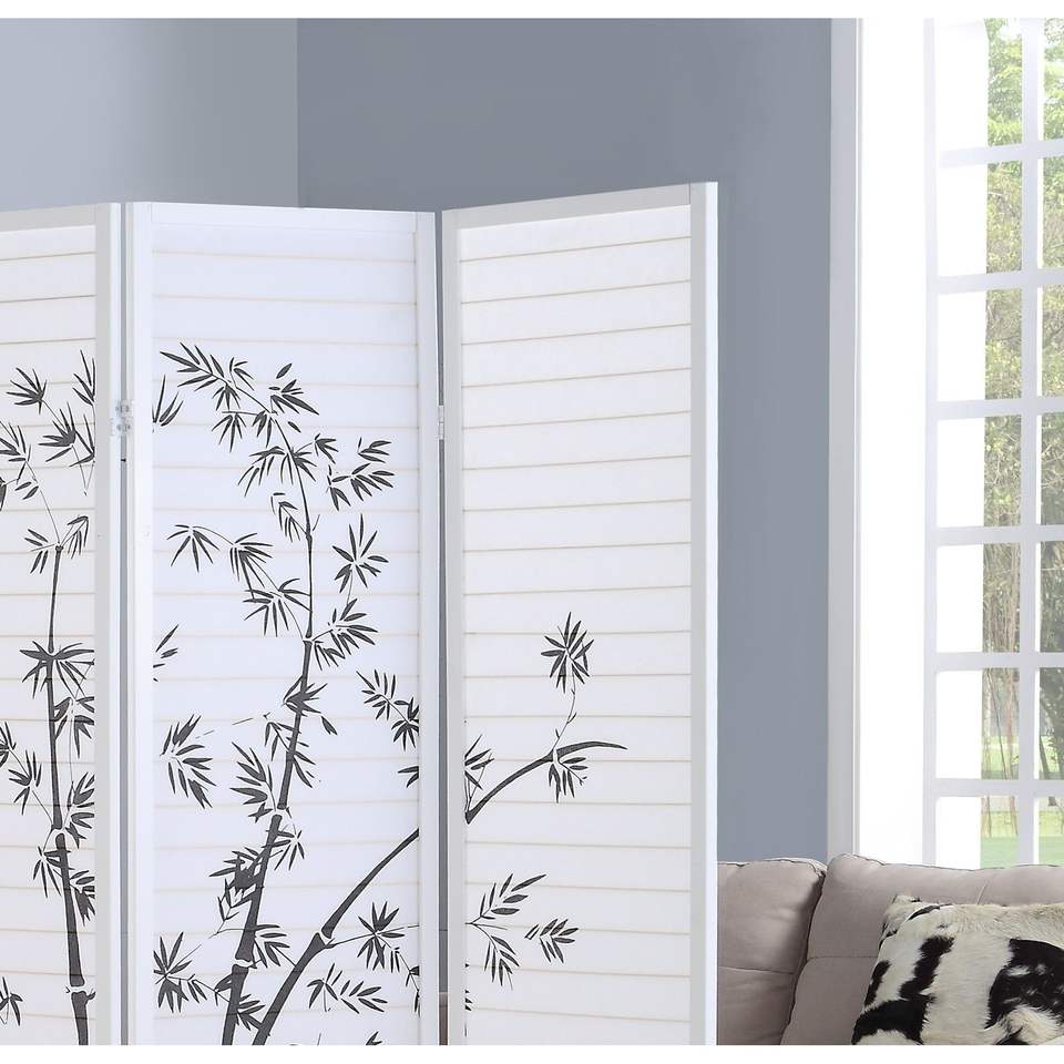 DB Bamboo Print 4-Panel Foldable Movable Framed Room Screen/Divider Antique Oriental Design for Bedroom White