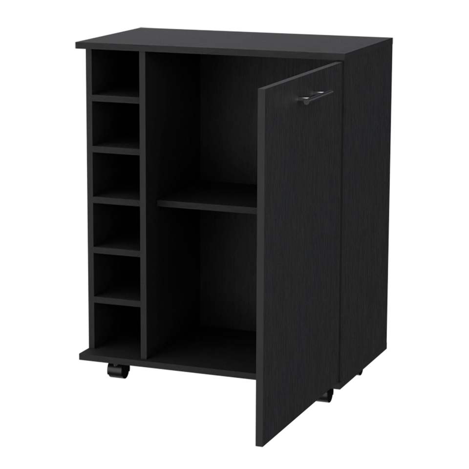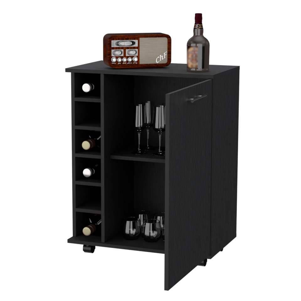 DB Black 6-Bottle Rack Bar Cart Premium Bar Sets with Stylish Design