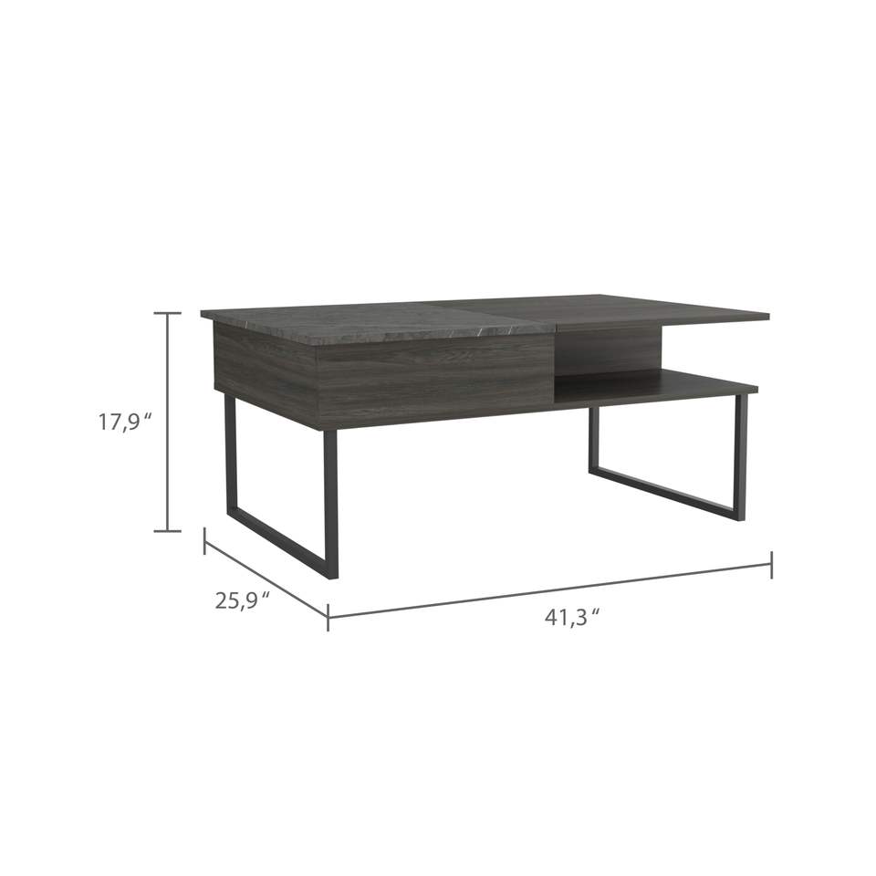 DB Carbon Espresso and Onyx 1-Shelf Convertible Lift Top Coffee Table with Glass Top for Living Room Home Furniture