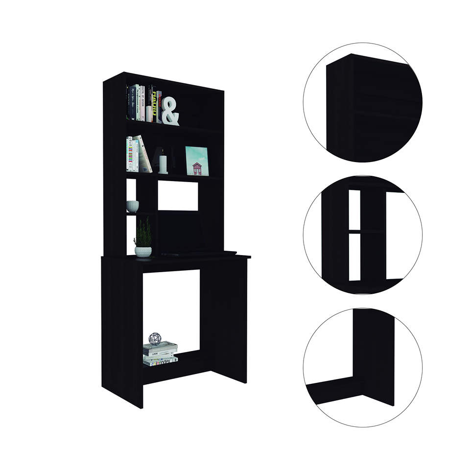 DB Compu Hutch Desk with Four Shelves Black Writing Desk Featuring One Lower Shelf for Enhanced Storage Solution