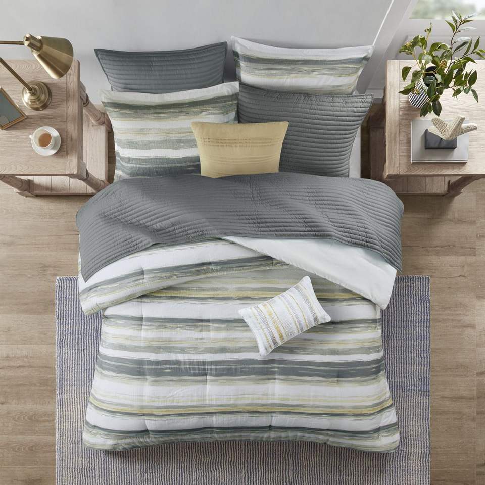 DB Floral Solid Pattern 8-Piece Printed Seersucker Comforter Quilt Set King Size Woven Cotton Silk Filling for Home Wedding Use