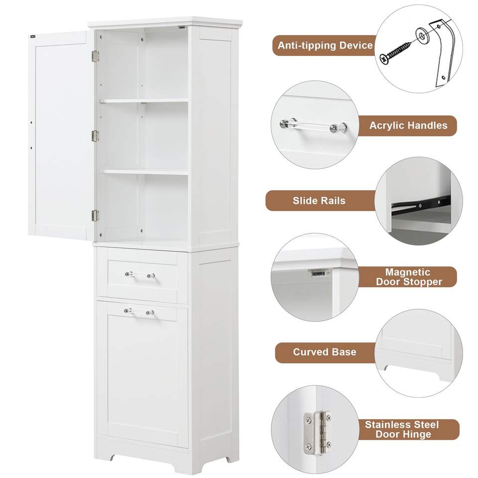 DB Freestanding Tall Bathroom Storage Cabinet MDF Board with Two Adjustable Drawers Shelf Cabinet Organizers Different Sizes