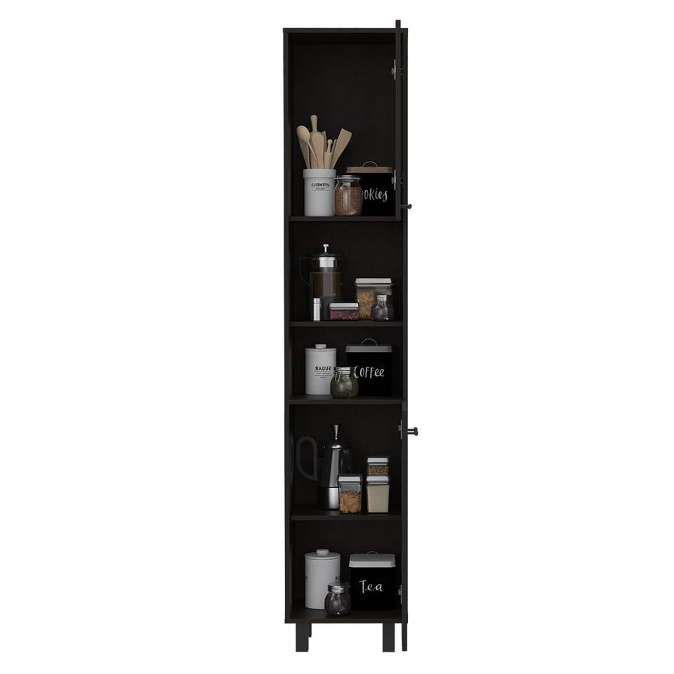 DB Hobart Modern Pantry in Black Four Legs with Three Interior Shelves and Two Cabinets Stainless Steel Material