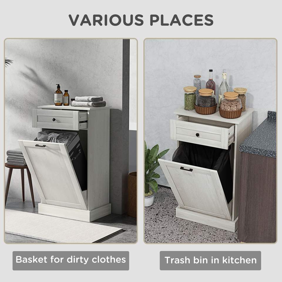 DB Hot Sale Light Gray Free Standing Recycling Trash Can Cabinet Kitchen Tilt Out Bin with Built-In Drawer