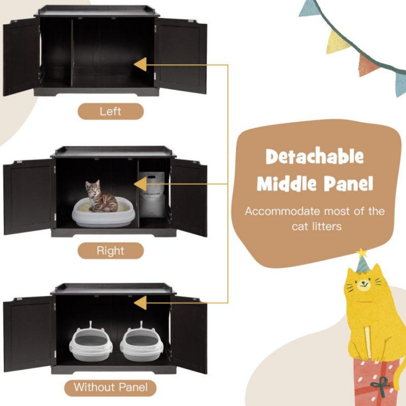 DB Large Cat Litter Box Enclosure with Double Doors Pet House Furniture for Cats and Kittens