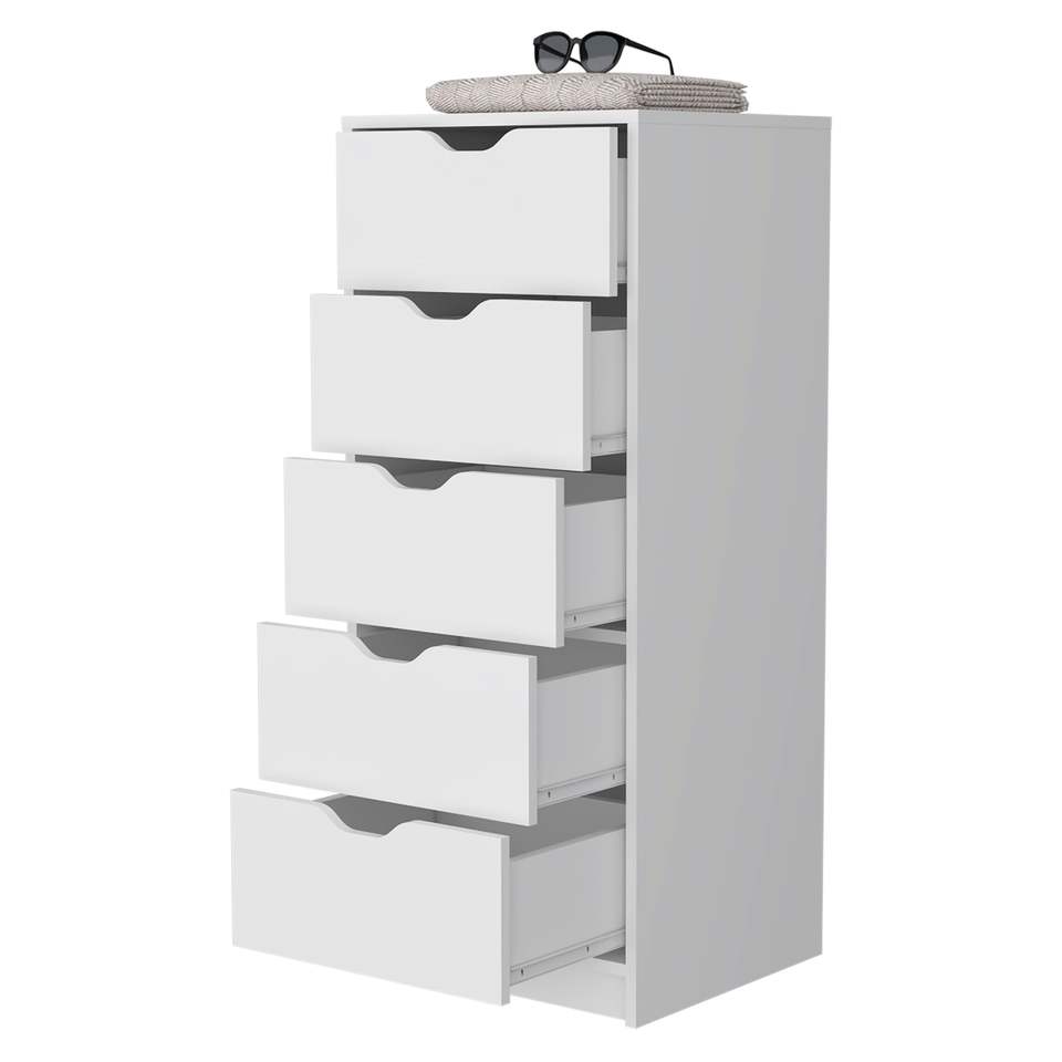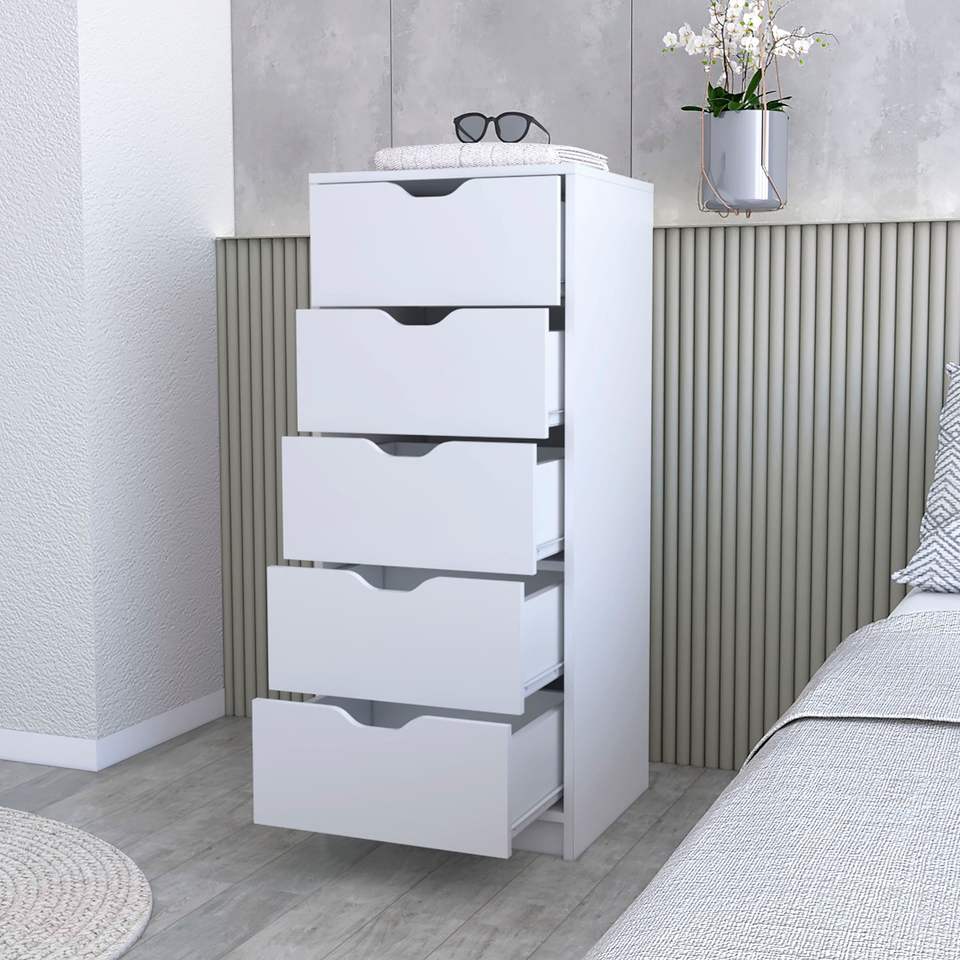 DB Logan White 5 Narrow Drawer Dresser Modern Luxury European Industrial Scandinavian French for Bedroom Living Room MDF Metal
