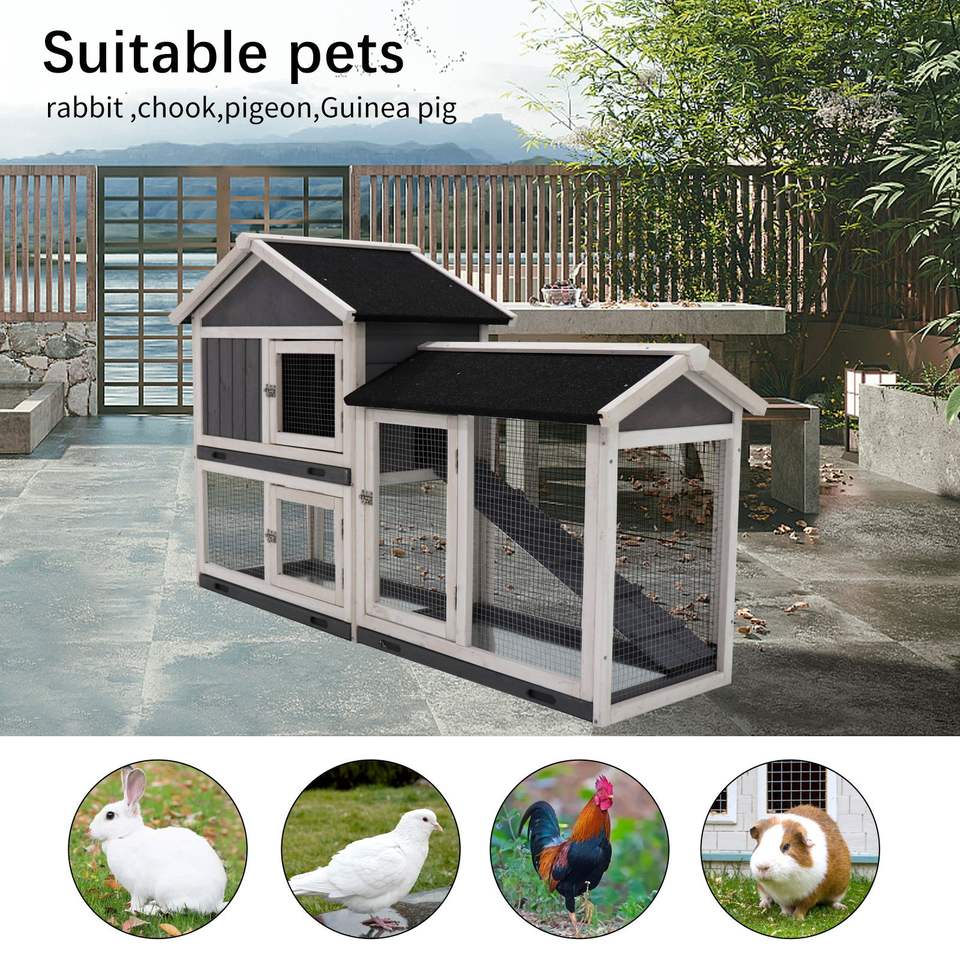 DB Luxury Rabbit Hutch Outdoor Bunny Cage with Run Pet House Featuring Deeper No Leak Tray and UV Panel-Indoor Use