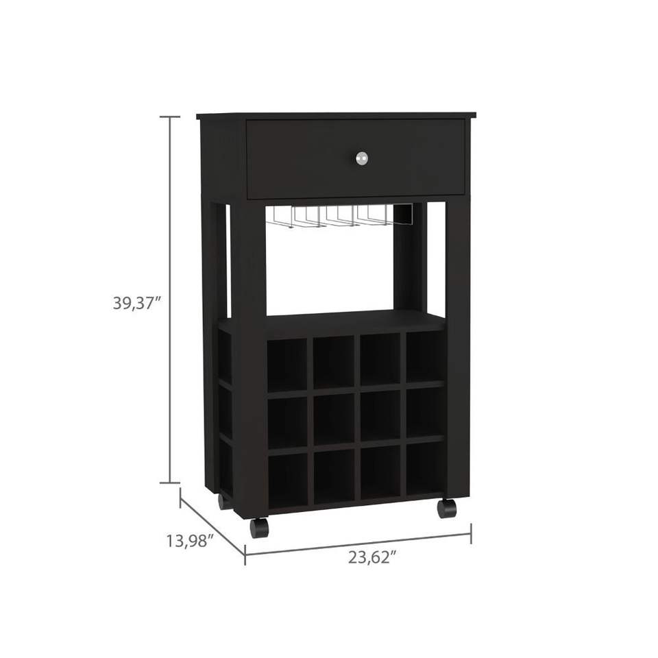DB Memphis Bar Cart with Twelve Built-In Wine Racks Four Legs One Open Shelf-Black Stacking Racks & Shelves