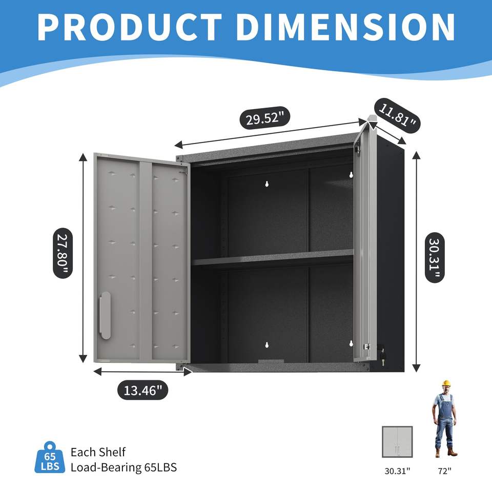 DB Metal Wall-Mounted Tool Storage Locker 1 Shelf 1 Opened Drawer with Locking Door for Garage Warehouse Office Easy Assembly