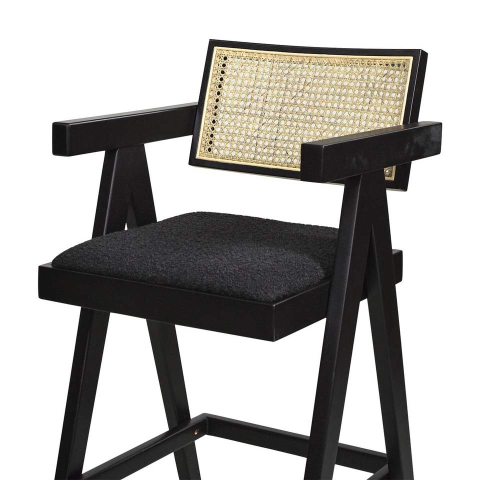 DB Milan 29.5\" Modern Resin Webbing Bar Stool with Arms Set 3 Ebony Black Boucle Contemporary Design Steel Material for Events