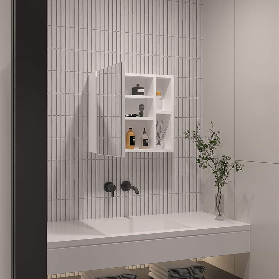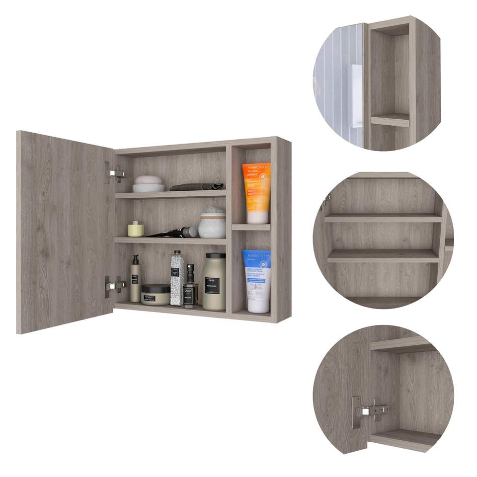 DB Minsk Single-Door Medicine Cabinet with Mirror Two External Shelves and Three Interior Shelves Bath Mirrors