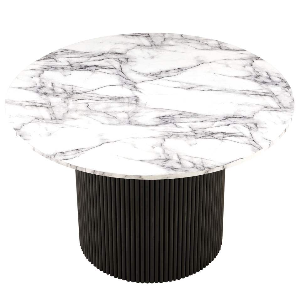 DB Modern 47-Inch Round Dining Table for 4 Imitation White Marble Grain MDF Tabletop Square Set for Kitchen Dining