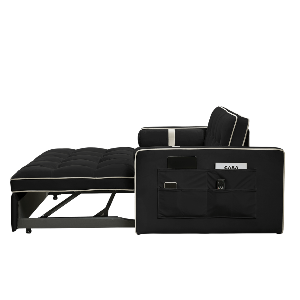 DB Modern 55.5\" Pull-Out Sleep Sofa Bed 2-Seater Loveseat Couch Side Pockets Adjustable Backrest Lumbar Pillows Foldable