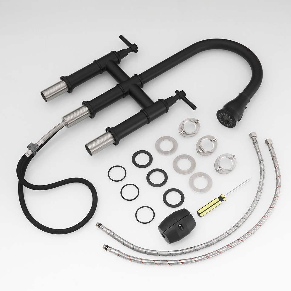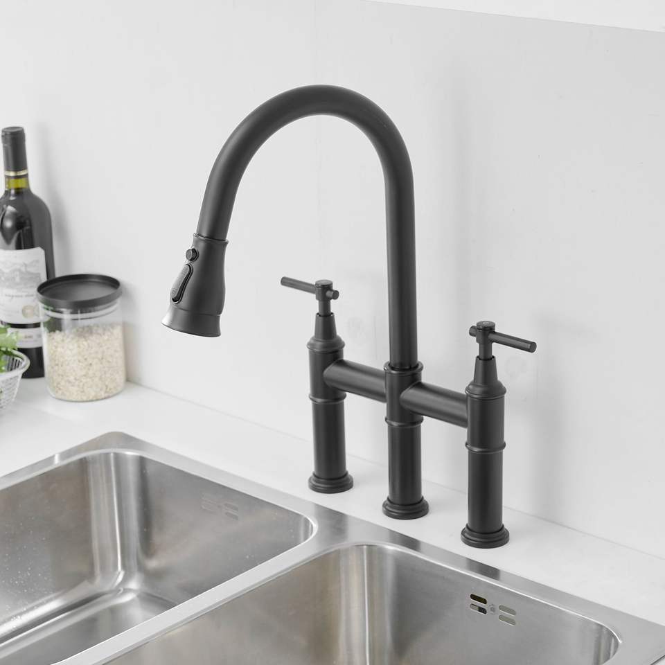DB Modern 8-Inch Double Handle Brushed Nickel Deck Mounted Kitchen Faucet Pull Down Spray Stainless Steel