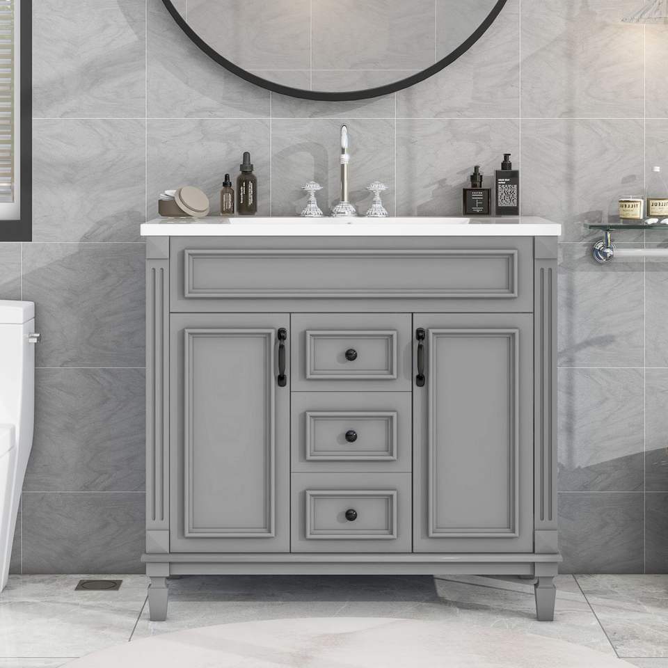 DB Modern Bathroom Storage Cabinet 36'' Solid Wood Vanity with Top Sink 2 Soft Closing Doors 2 Drawers Single Sink
