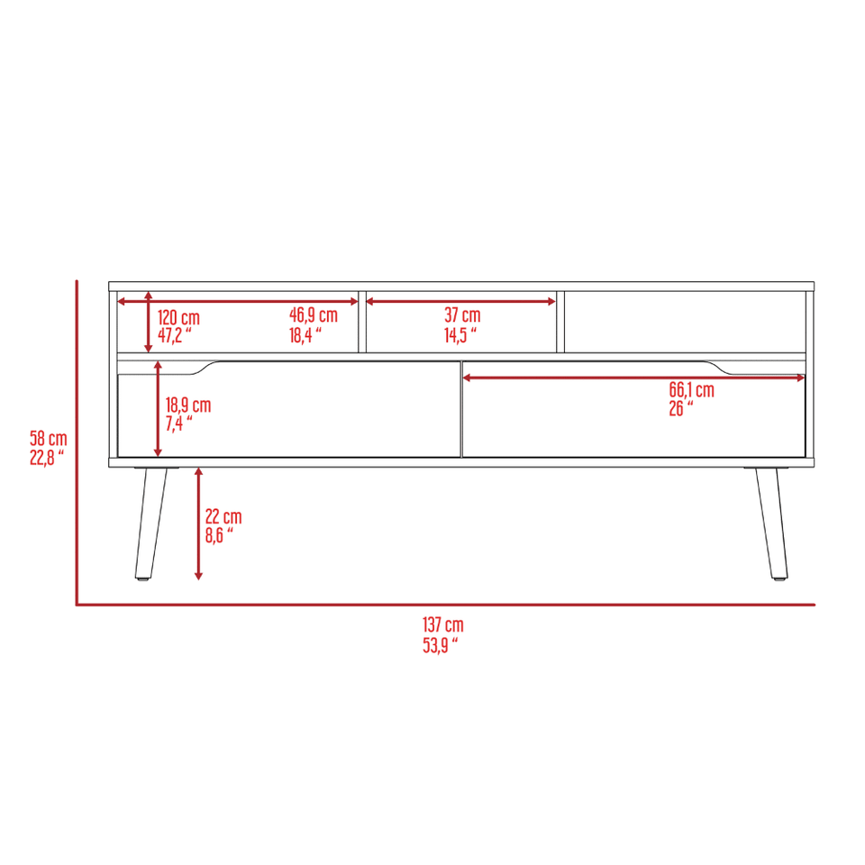 DB Modern Farmhouse TV Stand for TVs up 52\" Dark Walnut Finish Three Open Shelves Two Flexible Drawers TV Console for Living Ro