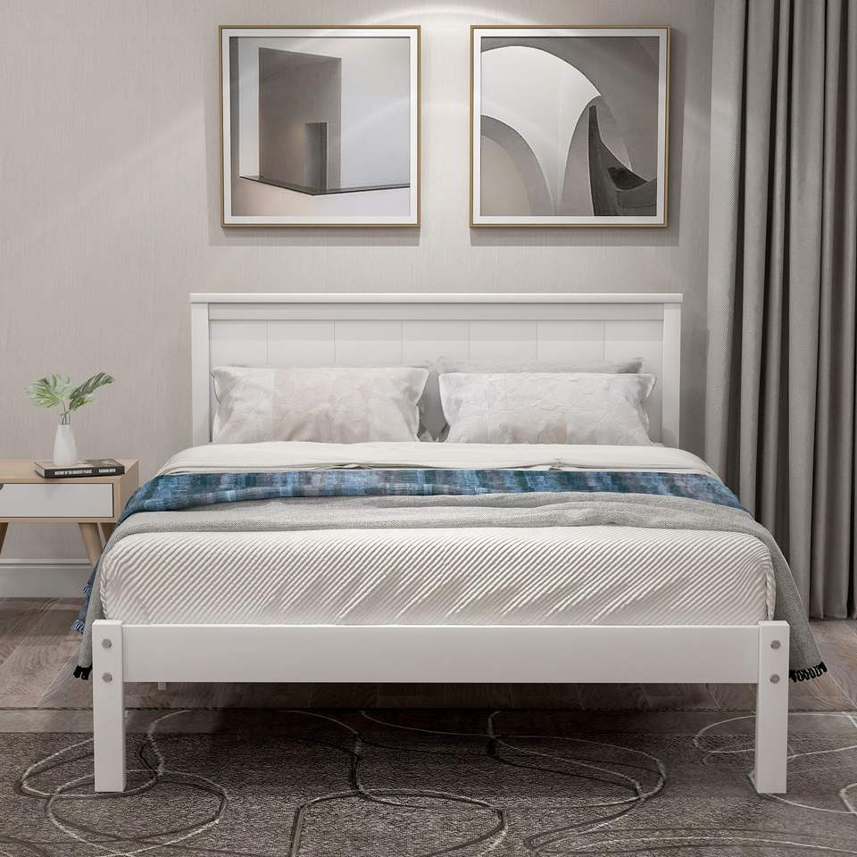 DB Modern White Twin Double Bed Frame with Headboard Wood Slat Support No Box Spring Needed (OLD SKU WF191418AAK)