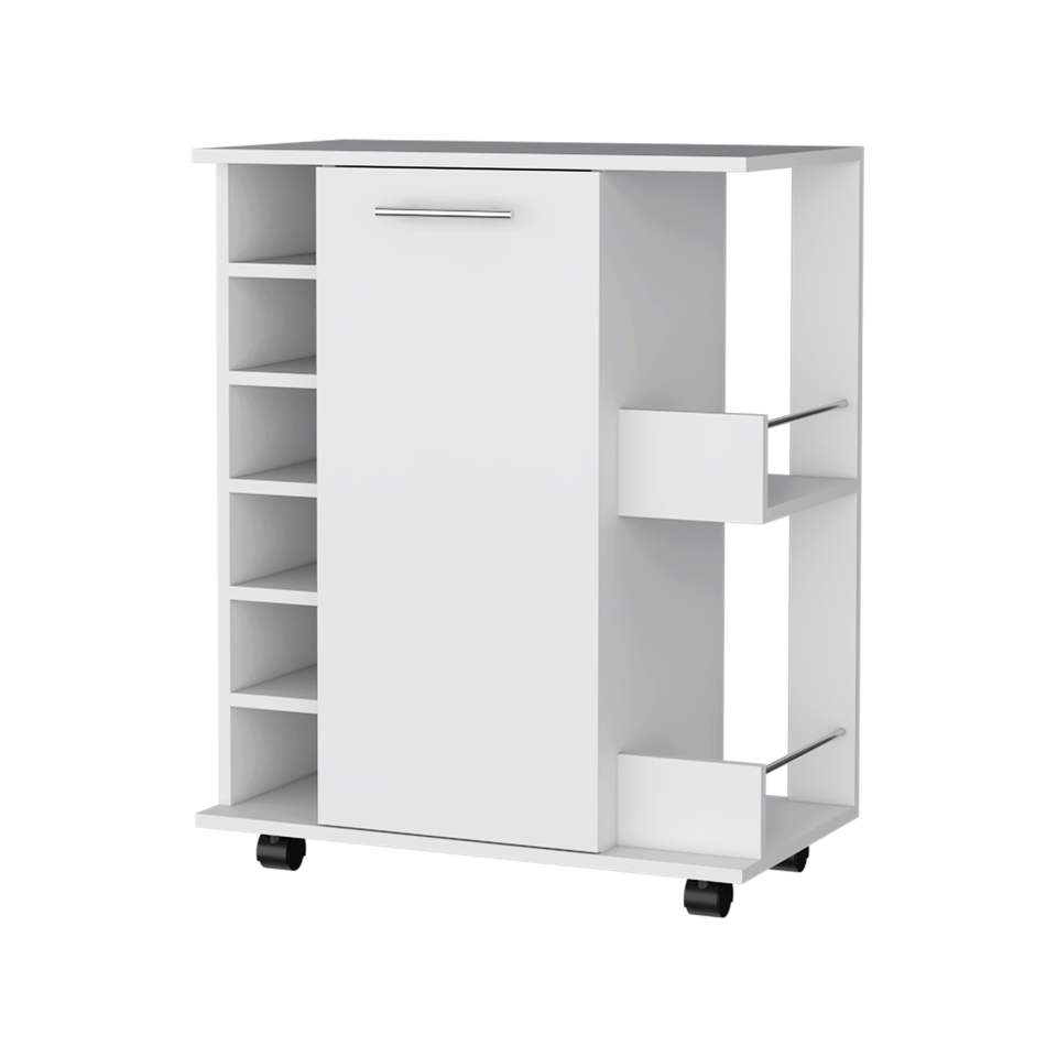 DB Modern White Woodland Bar Cart with Casters Wine Rack and Open Shelf for Hotels and Kitchens