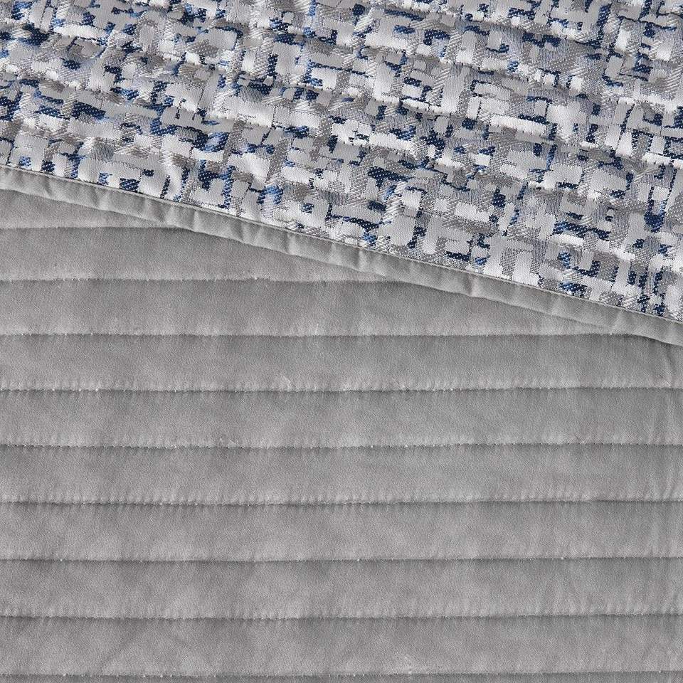 DB Navy Full/Queen Reversible Jacquard Quilt Set Throw Pillows 6-Piece Floral Vintage Pattern Soft Cotton for Wedding Hotel