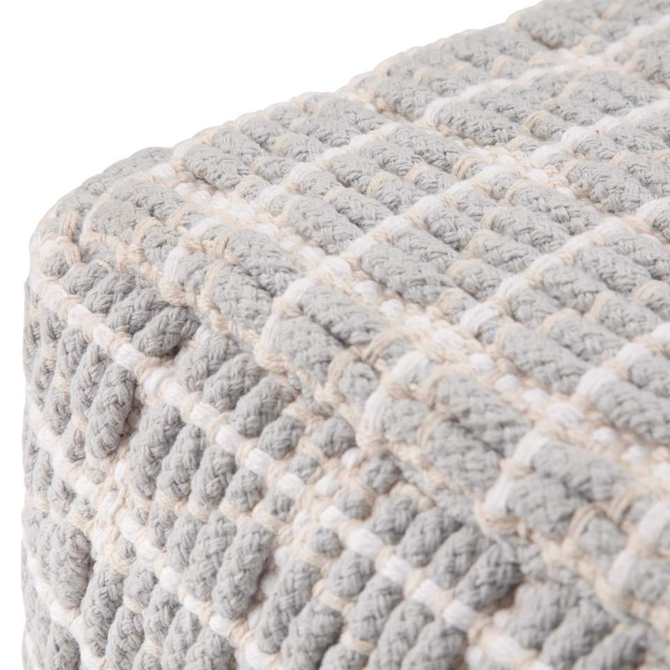 DB Noreen Light Blue White Square Pouf Removable Accent Ottoman for Living Room Bedroom Babies Kids Outdoor Use Home Stool