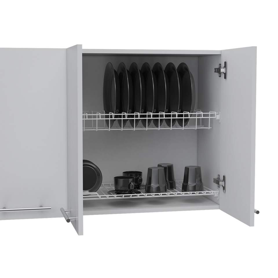 DB Oceana 120 White Filing Cabinet Four-Door Wall Unit with Two Cabinets and Two Shelves