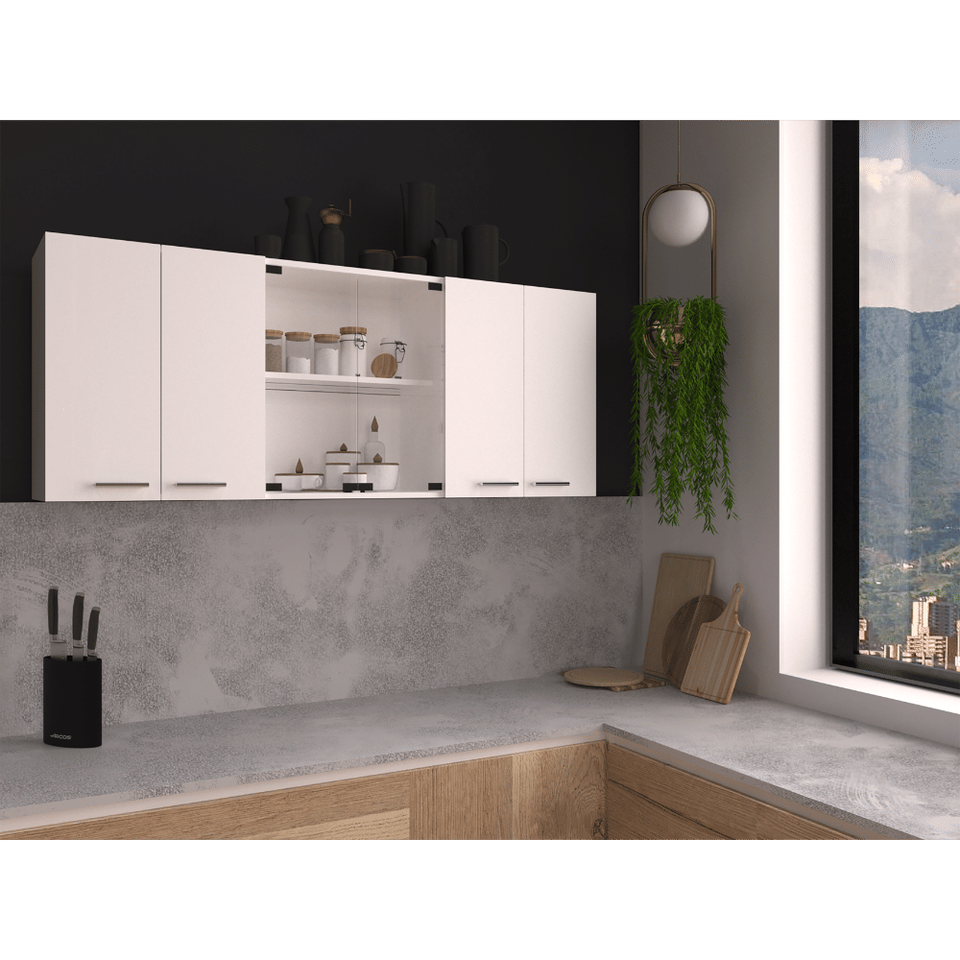 DB Oceana 150 Wall Double Door Cabinet With Glass, Four Interior Shelves, Glass Cabinet, White