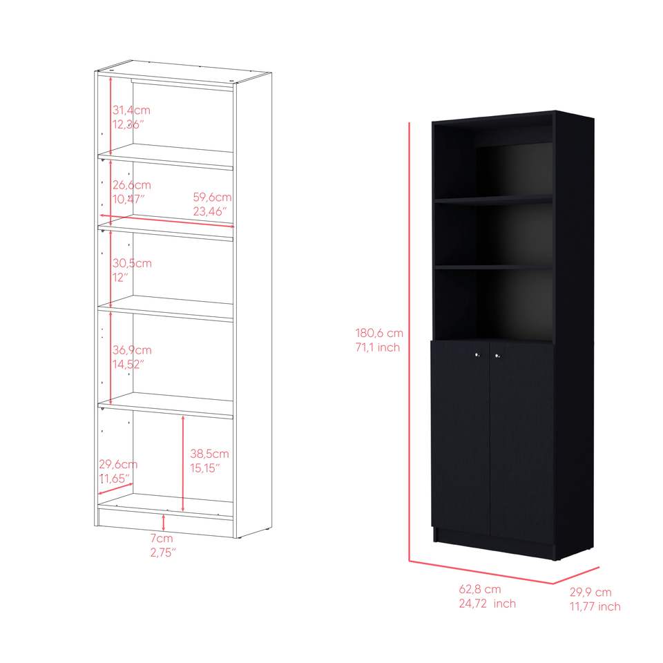 DB Office Benzoni Black Dual-Door Bookcase & Bookshelf