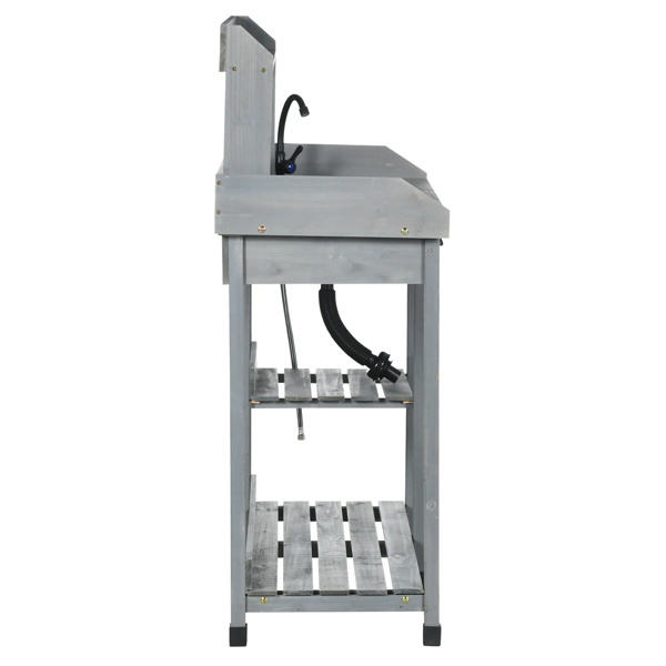 DB Outdoor Garden Potting Bench Table Rattan and Wood with Removable Sink and Faucet for Villa School Park